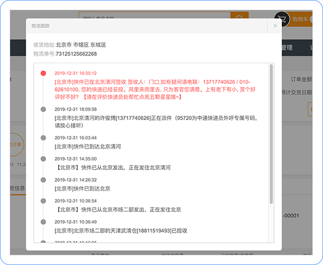 应用场景: 企业使用第三方物流公司发货,发货后,为了获得更好的用户体验,希望自己的经销商客户可以实时的在订货商城订单上查看物流公司、物流单号及物流的实时跟踪动态。