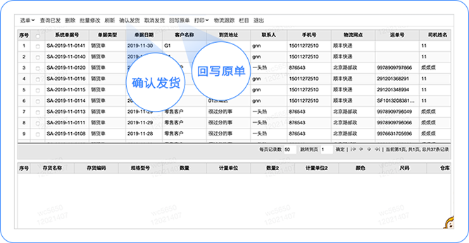 1、多张客户订单统一发货,需要统一打印发货单、电子面单,批量维护发货物流公司、运单号、发货司机、寄件人信息、运费;